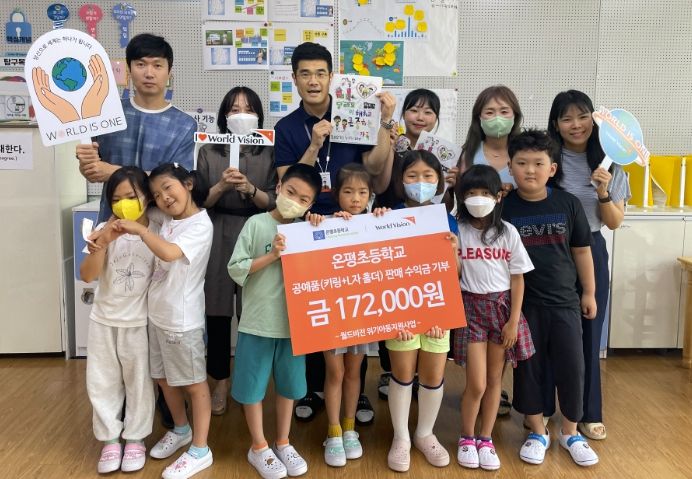 20일 제주도교육청에 따르면 온평초 2학년 학생들은 IB 교육 프로그램의 실천으로 직접 만든 공예품 판매 수익금 17만2000원을 월드비전에 기부했다.