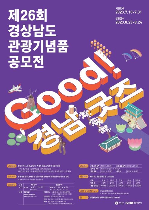 [제주교통복지신문 김강석 기자] 경남도는 경남관광재단과 함께 경남 대표 관광기념품 발굴 및 상품화를 위한 ‘제26회 경상남도 관광기념품 공모전’을 개최한다고 밝혔다.