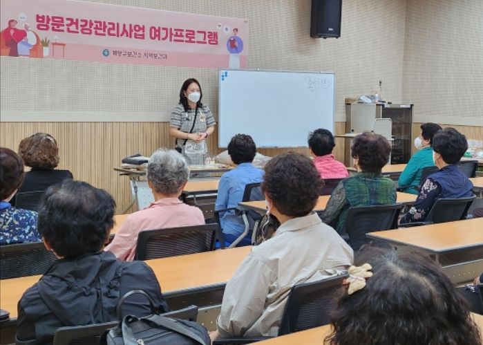한편, 방문건강관리사업은 노인 장기요양등급(1~5등급)을 판정받지 않은 65세 이상 노인, 사회 · 경제적 건강 취약계층과 건강 고위험군 대상자에게 동별 방문간호사가 직접 방문해 건강관리, 보건복지 자원 연계 등을 지원하는 사업이다.
