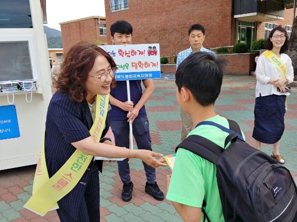 [제주교통복지신문 김강석 기자] 경상북도봉화교육지원청은 2023년 6월 20일 봉화녹색어머니연합회, 춘양초등학교 교직원과 함께 춘양초등학교 교문에서 등굣길 교통안전 캠페인을 실시했다.