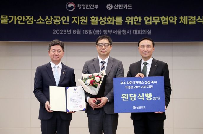 [제주교통복지신문 김강석 기자] 지난 6월 16일 정부서울청사 대회의실에서 열린 행정안전부와 신한카드의 ‘물가안정·소상공인 지원 활성화를 위한 업무협약 체결식’에서 고양시 업체인 '원당식빵'이 우수 착한가격업소로 선정되어 행정안전부 표창을 받았다.
