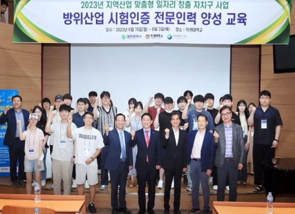 2023년도 지역산업 맞춤형 일자리창출 자치구 사업의 공모사업으로 선정된 이번 교육은 국방 무기와 군수품 등의 품질과 신뢰성 적합 여부를 시험 평가하는 전문가 양성과정으로 시험인증 전문기관 방문 현장실습과 조별 프로젝트 산출과제 등을 포함 총 175시간 교육을 수료한 자는 취업 컨설팅을 통해 시험인증 전문기관 취업 연계 지원을 받을 수 있다