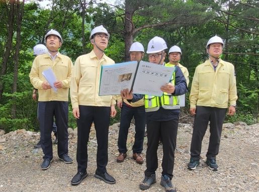 이날 평창군 수하지구 급경사지 공사현장을 방문한 김명선 부지사는 수해방지대책과 안전시설 설치현황 등을 살펴보고 우기대비 안전관리에 더욱 힘써달라는 당부와 함께 현장 직원들을 격려했다.