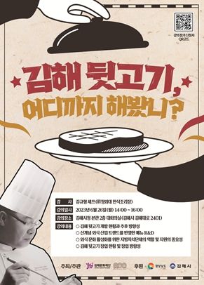 이번 강연에는 청와대 한식조리장을 역임했던 김규형 셰프를 초청해 김해 뒷고기 개발 현황과 추후 방향성, 신개념 외식 산업 트렌드를 반영한 메뉴 R&D, 김해 뒷고기 창업 현황 및 창업 방향성 등의 내용을 들을 수 있다.