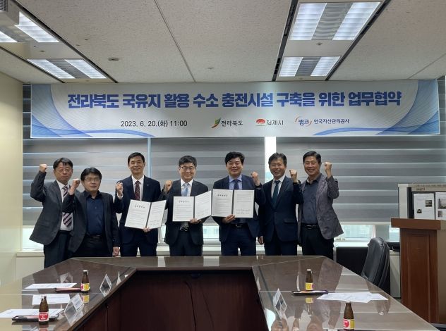 이번 협약은 캠코가 관리하는 국유지를 활용해 전북지역에 수소 충전 기반을 확충함으로써 친환경자동차 보급 확대와 수소 산업 활성화에 기여하고자 마련됐다.