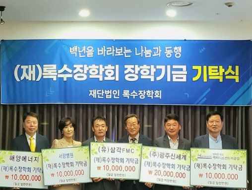 이날 기탁식에는 광주신세계 2000만원, (유)삼각에프엠씨·해피니스 컨트리클럽·해양에너지·서광병원 각 1000만원, 소방공무원 김재갑 씨 161만9000원 등 총 6161만9000원의 장학기금이 전달됐다.