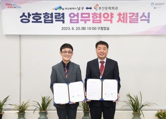 [제주교통복지신문 김강석 기자] 부산광역시 남구와 (재)부산문화회관는 지난 6월 20일 남구청에서 지역의 문화예술 활성화와 문화소외계층을 위한 지원사업 개발 및 상호협력 등을 위한 『상호협력을 위한 업무협약식』을 가졌다.