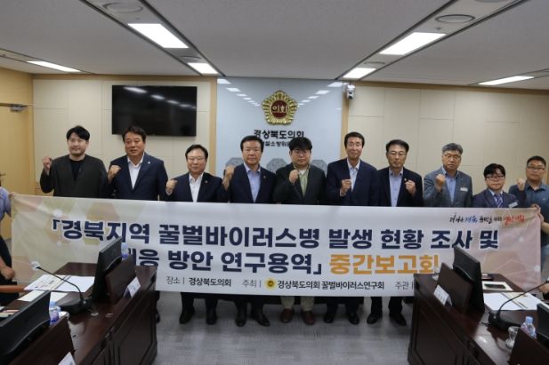 [제주교통복지신문 김강석 기자] 경북도의회 의원연구단체인 '꿀벌바이러스연구회'(대표 박순범 의원)는 20일 도의회 회의실에서 “경북지역 꿀벌바이러스병 발생 현황 조사 및 대응 방안 연구 용역” 중간보고회를 개최했다.