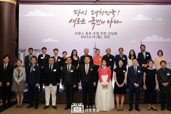 [제주교통복지신문 김강석 기자] 프랑스를 방문 중인 윤석열 대통령은 김건희 여사와 함께 6.19일 현지 동포를 초청하여 만찬을 겸한 간담회를 가졌다. 이번 간담회에는 한-불 다문화 가정 동포, 입양 동포를 포함하여 각계 각층에서 활약 중인 동포 100여 명이 참석했다.