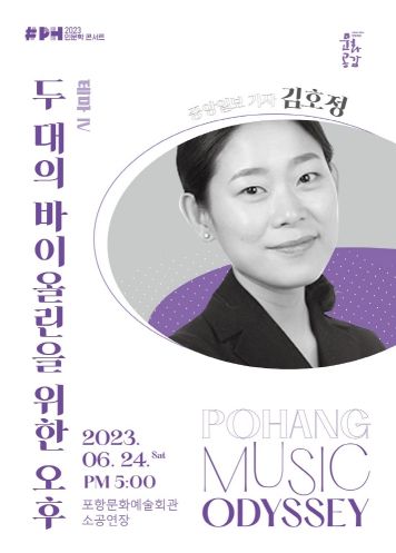[제주교통복지신문 김강석 기자] 포항문화재단은 오는 24일 오후 5시 포항문화예술회관 소공연장에서 ‘포항 음악 오디세이’ 네 번째 테마 ‘두 대의 바이올린을 위한 오후’를 개최한다.