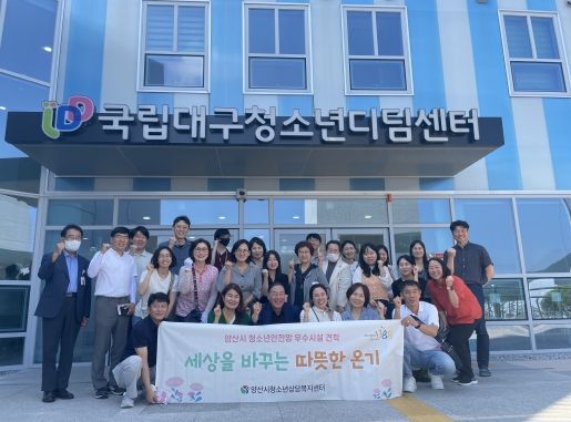 [제주교통복지신문 김강석 기자] 양산시청소년상담복지센터는 지난 16일 청소년안전망 위원 22명이 참석한 가운데 국립대구청소년디딤센터와 대구시청소년문화의집 꼼지락발전소에 프로그램 벤치마킹을 위한 양산시 청소년안전망 우수시설 견학을 실시했다.