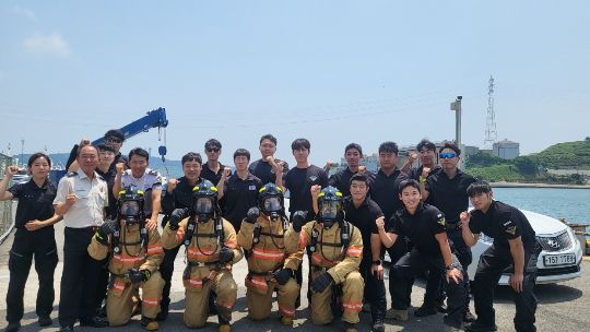훈련내용은 ▲화재선박 발생 시 대응 절차 ▲유형별(백드래프트, 플래시 오버 등) 안전사고 예방법 ▲구획 화재 진압 대응절차 교육 ▲화재진압 장비 착용 절차 등 선박 화재 시 신속한 현장 활동이 가능할 수 있도록 기본적인 교육·훈련으로 진행됐다.