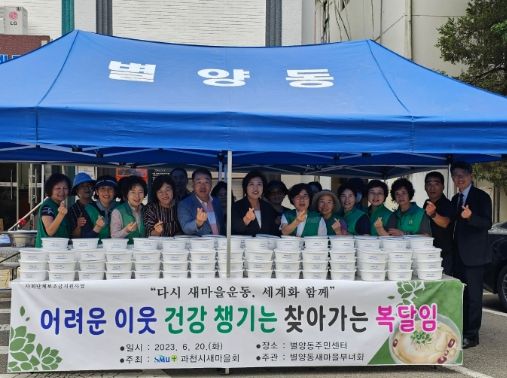 [제주교통복지신문 김강석 기자] 과천시 별양동 새마을부녀회는 지난 20일 별양동주민센터 뒷마당에서 초복을 앞두고 건강한 여름나기를 기원하는 마음으로 복달임 행사를 열었다.