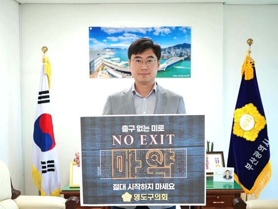 [제주교통복지신문 김강석 기자] 부산광역시 영도구의회 이경민 의장이 마약범죄 예방 ‘노 엑시트(NO EXIT)’ 캠페인에 동참했다.