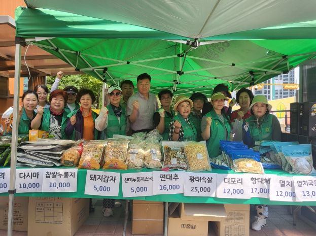 이번 행사에서는 감자, 양파 등의 농산물과 멸치, 참기름 등 다양한 물품을 판매했으며, 많은 주민이 참여하여 사랑 나눔에 동참했다.