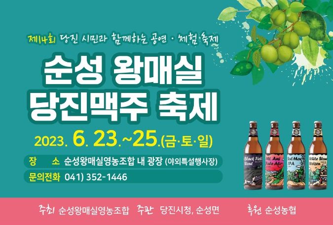 순성왕매실영농조합이 개최하는 이번 행사는 순성 왕 매실의 우수성과 당진 최초의 수제 맥주인 당진 맥주를 알리기 위해 다채로운 공연과 체험활동을 진행한다.