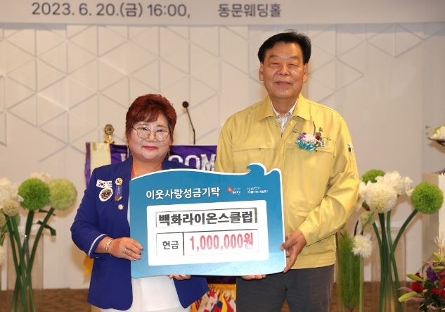 태안백화라이온스클럽은 지난해 6월 열린 제8·9대 회장단 이·취임식에서도 태안군에 성금 100만 원을 기탁하며 온정을 전한 바 있다.