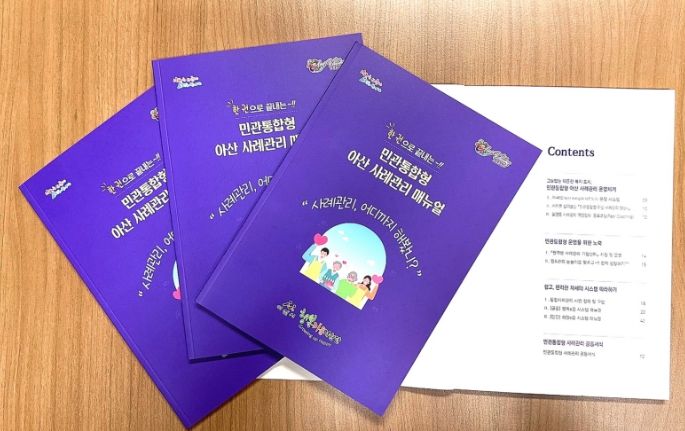 [제주교통복지신문 김강석 기자] 아산시가 지난 20일 ‘민관 통합형 아산 사례관리 안내서(매뉴얼)’를 제작해 사회복지 시설‧기관‧단체‧관계기관 등에 배포했다.