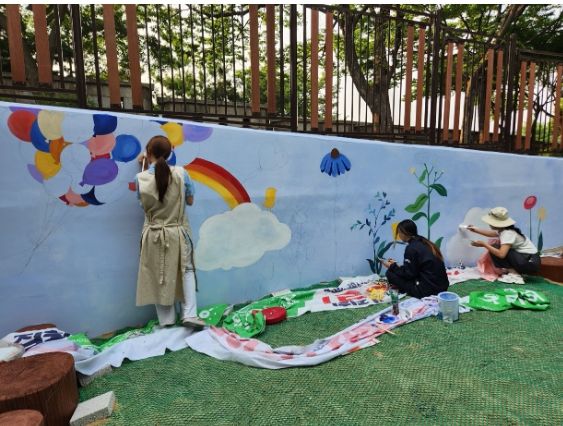‘미담’이란 재능 나눔으로 아름다운 자원봉사 이야기를 만들어가자는 뜻과 함께 ‘美’와 ‘담벼락’을 합친 합성어다. 이날 봉사에는 성균관대학교 미술학과 학생 등이 참여했다.
