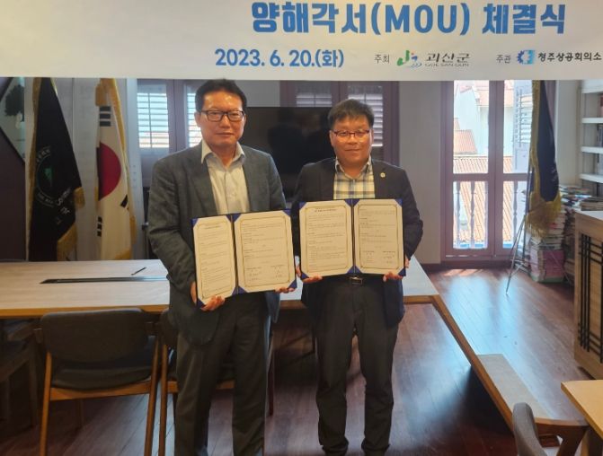 간담회에 이어 괴산군은 ‘괴산군 농식품 대싱가포르 수출 확대를 위한 양해각서(MOU) 체결식’을 열고 두 기관과 괴산군 농식품 수출 확대를 위해 상호 협력하기로 했다.
