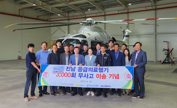 [제주교통복지신문 김강석 기자] 전라남도는 섬 지역 등 오지에서 발생한 응급환자의 소중한 생명을 구해온 닥터헬기 출동 3천회 달성 기념행사를 지난 20일 신안 압해읍 닥터헬기 계류장에서 개최했다고 밝혔다.