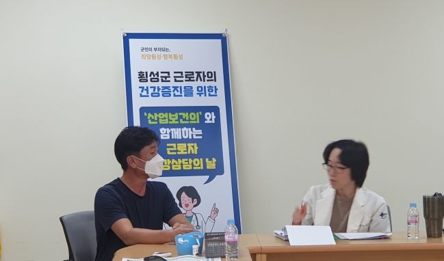 횡성군은 사업장 근로자의 건강을 증진하고 산업재해를 예방하기 위해 올해부터 직업환경의학과 전문의를 횡성군 산업보건의로 위촉하여 현업업무 근로자를 대상으로 근골격계 질환 및 뇌심혈관 질환 등을 예방하기 위한 ‘찾아가는 맞춤형 건강상담’을 꾸준히 실시하고 있다.