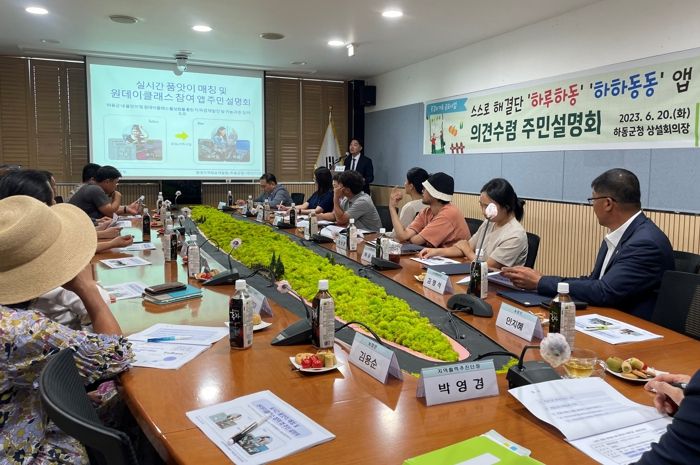 [제주교통복지신문 김강석 기자] 하동군은 지난 20일 군청 상설회의장에서 공감e가득 공모사업 ‘실시간 품앗이 매칭 및 귀농귀촌 원데이클래스 참여 앱 개발사업’ 활성화를 위한 주민설명회를 개최했다고 21일 밝혔다.
