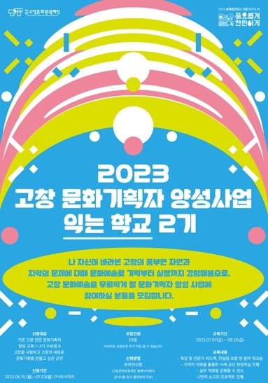 [제주교통복지신문 김강석 기자] 고창문화관광재단이 고창문화기획자 양성 사업 ‘익는학교’ 수강생을 모집한다.