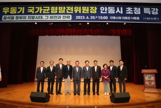 [제주교통복지신문 김강석 기자] 안동시는 20일 오전 10시 안동시청 대동관 낙동홀에서 우동기 국가균형발전위원장을 초청해 “이제는 지방시대 다시 뛰는 대한민국! 그 비전과 전략’을 주제로 특별강연을 개최했다.