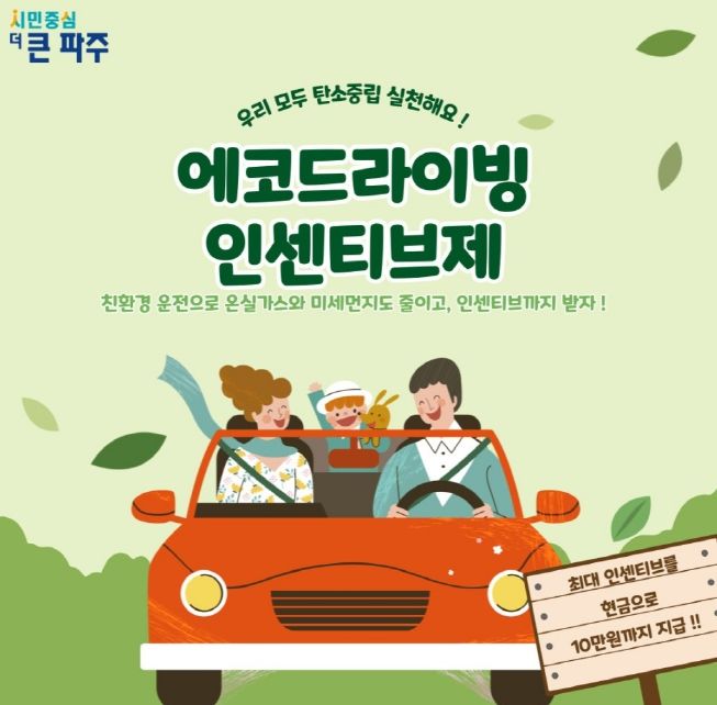 [제주교통복지신문 김강석 기자] 파주시가 온실가스를 줄이고 탄소중립 생활 실천 운동을 확산하기 위해 2023년 제2차 친환경운전 성과급 제도(에코드라이빙 인센티브제)를 시행한다.