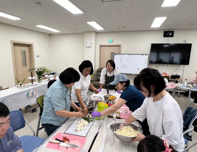 농업기술센터와 연계한 치유농업 활용 복지화 지원 프로그램의 마지막 회차(주간보호팀)로써 3월부터 옥상텃밭에서 가꾸어 온 쌈채소를 활용한 △한잎 쌈밥 △감자전 △꽃잎을 얹은 브리게리따 △허브레몬 에이드 만들기 등 다채로운 내용으로 참여자들의 큰 호응을 얻었다.