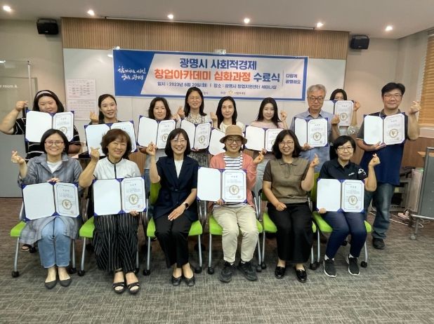 [제주교통복지신문 김강석 기자] 광명시는 지난 20일 창업지원센터에서 ‘사회적경제 창업 아카데미 심화과정’ 수료식을 개최했다.