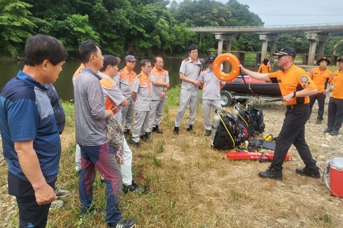 이틀간의 훈련은 군청 안전총괄과와 청양소방서 현장대응단, 보건의료원 직원으로 구성된 수상 안전 전담팀이 주관했으며 안전 요원 10명, 119시민수상구조대와 지역자율방재단 관계자 등 30여 명이 참여했다.