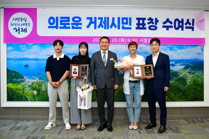 [제주교통복지신문 김강석 기자] 거제시는 20일 시청 시장실에서 ‘의로운 시민’으로 선정된 조옥연 씨(47세), 조무견 씨(35세)에게 표창패를 수여하고 감사의 마음을 전했다.