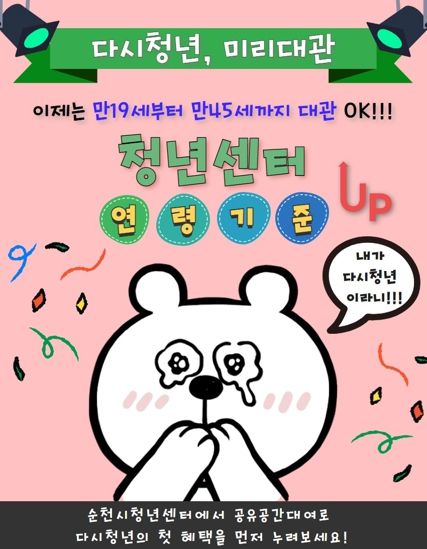2024년부터 순천시 청년기본조례의 개정에 따라 청년 나이 기준이 만19~39세에서 만18~45세로 확대된다. 이번 ‘다시청년 미리대관’은 다시 청년으로 편입되는 만40~45세의‘다시청년’을 대상으로 한다.