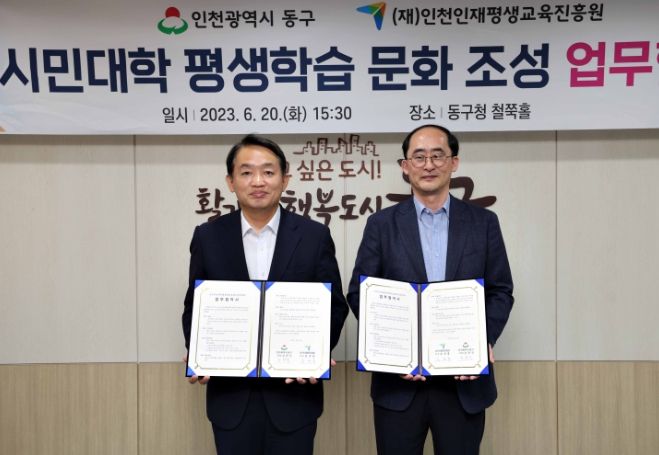 김찬진 동구청장은 “인천시민과 동구 구민이 함께 성장할 수 있는 평생학습도시를 만들기 위해 인천인재평생교육진흥원과 함께 협력해 나가겠다”고 말했다.