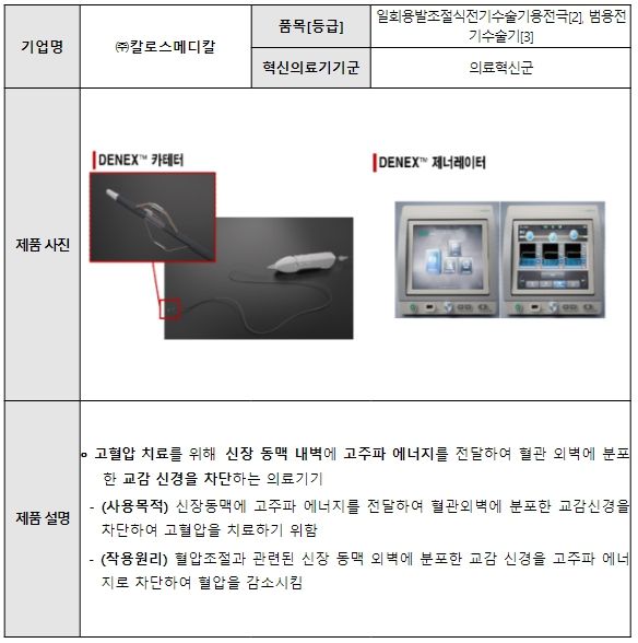약물 치료로 효과가 없는 저항성 고혈압 환자에게 새로운 치료 방법으로 인정받아 혁신의료기기로 지정됐으며, 현재 동 제품은 확증임상시험 진행중으로 향후 고혈압 환자 치료의 새로운 길을 열 것으로 기대된다.