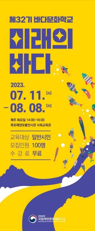 [제주교통복지신문 김강석 기자] 문화재청 국립해양문화재연구소(소장 김성배)는 7월 11일부터 8월 8일까지 매주 화요일 오후 2시 목포해양유물전시관 사회교육관에서 '제32기 바다문화학교'를 운영하기로 하고, 6월 22일부터 수강생을 모집한다.