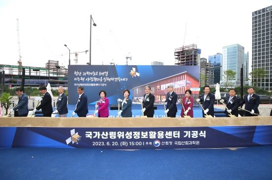산림청 국립산림과학원(원장 배재수)은 6.20(화), 서울 강동구 고덕강일지구 고덕비즈밸리에 위치한 공공청사 3부지에서 ‘국가 산림위성정보 활용센터’ 기공식을 개최했다고 밝혔다.