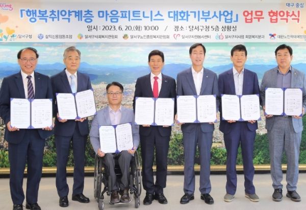 [제주교통복지신문 김강석 기자] 대구 달서구는 지난 20일 6개 기관과 '행복취약계층 마음피트니스 대화기부사업' 운영 활성화를 위한 업무협약을 체결했다고 밝혔다.