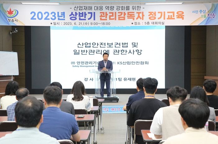[제주교통복지신문 김강석 기자] 정읍시는 21일 정읍시 소속 현업사업장 관리감독자 70여명을 대상으로 안전한 현업사업장 조성을 위한 상반기 관리감독자 정기 교육을 실시했다.