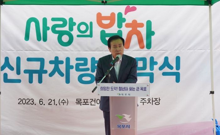 [제주교통복지신문 김강석 기자] 목포시가 21일 저소득 어르신들에게 따뜻한 점심식사를 제공하는 사랑의 밥차 신규차량을 선보였다.