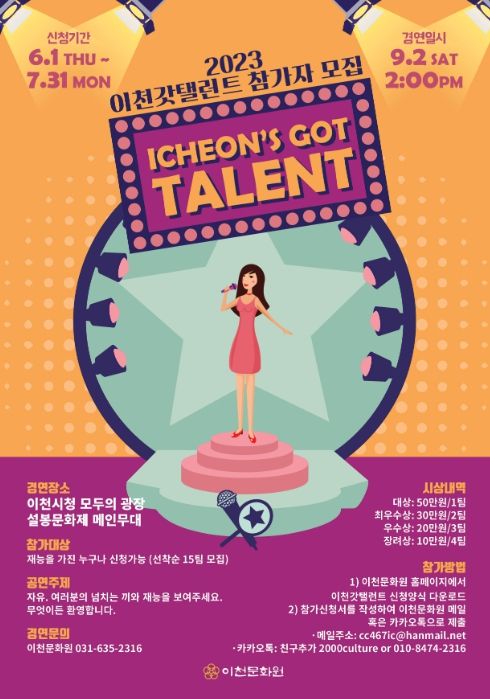 한편 이천문화원에서는‘이천달력사진공모전’은 2023년 5월 22일부터 2023년 7월 24일까지, ‘이천시영상공모전’은 2023년 5월 17일부터 2023년 7월 17일까지 작품을 접수를 받고 있으며, 누구나 참여할 수 있다.