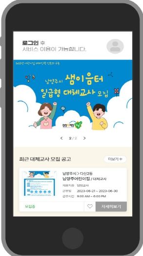 [제주교통복지신문 김강석 기자] 남양주시는 지난 19일 어린이집 보육 교직원에 대한 처우 개선 정책의 일환으로, 대체인력 실시간 온라인 매칭 앱 ‘샘이음터’의 운영을 시작했다고 21일 밝혔다.