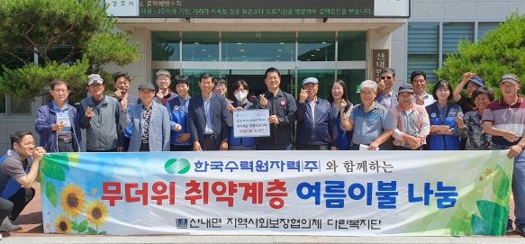 한수원 설비기술처 사회봉사단은 산내면과 자매결연을 하고, 지역사회의 신뢰할 수 있는 동반자로서 농번기 일손 돕기, 소외계층 지원, 환경정비 등 다양한 사회공헌활동을 진행하고 있다.