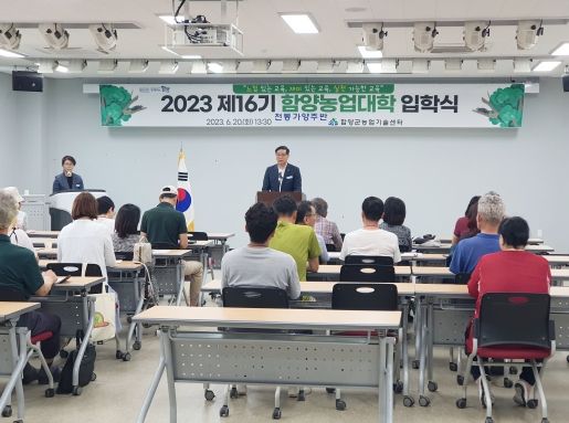[제주교통복지신문 김강석 기자] 함양군은 6월 20일 오후 농업기술센터 회의실에서 진병영 군수를 비롯한 교육생 30여명이 참석한 가운데 함양 미래농업을 선도해 나갈 농업인재 리더 양성을 위한 ‘2023년 제16기 함양농업대학’ 입학식을 개최했다.