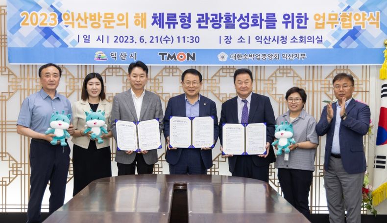 시는 21일 이커머스플랫폼 티몬, 대한숙박업중앙회 익산지부와 업무협약을 체결하고 체류형 관광 활성화를 위해 공격적인 온라인마케팅을 펼친다고 밝혔다.