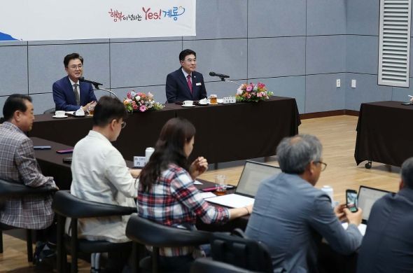 김 지사는 21일 민선 8기 2차 시군 방문 13번째 일정으로 방문한 계룡시에서 열린 지역 기자 간담회 자리에서 “계룡시는 대전시가 가지지 못한 부족한 부분을 충족시켜 대전의 인구를 유입하는 시정을 펼쳐야 한다는 생각을 가지고 있다”며 “전국에서 삶의 질이 가장 높은 도시가 될 수 있도록 이 부분은 도가 충분히 지원할 것”이라고 밝혔다.