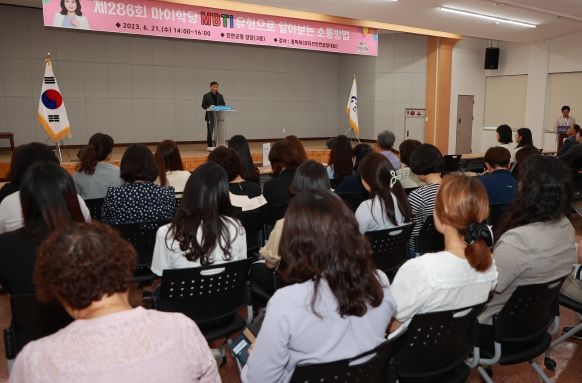 강의는 정미희 모티브인 컨설팅 대표가 강사로 나서 'MBTI 유형으로 알아보는 소통방법'을 주제로 강의를 펼쳤다.