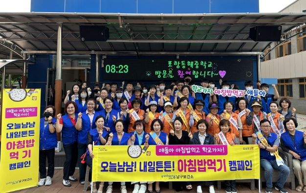 [제주교통복지신문 김강석 기자] 포항시 남구보건소는 지난 20일 동해중학교 등굣길에서 학생과 교직원을 대상으로 ‘오늘냠냠! 내일튼튼!’ 아침밥 먹기 캠페인을 실시했다.